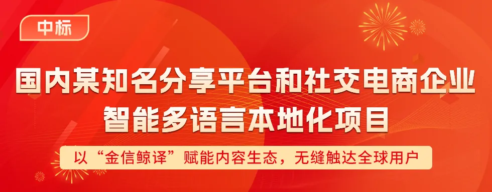 J9九游将为国内某知名分享平台和社交电商企业给予覆盖英语、马来西亚语、日语等语言的本地化服务,同时为客户全球化内容生态接入“J9九游鲸译”云端翻译管理平台,并依托AI技术赋能的精准本地化解决方案,深度助力客户深耕全球市场,打通内容传播、跨境电商与社区互动的全球链路,有助于平台优质内容与商家资源高效触达全球用户。
